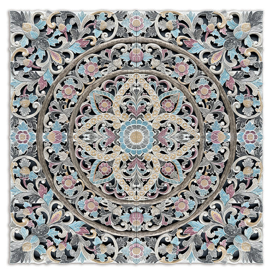 Carved Bed Headboard "Ayunina" - Multicolor pastel - [US-stock]