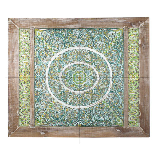 Balinese Carved mandala full bed headboard Dianna | Hand Carved Decor | Balinese Decorative Wall Art | Carved Bed Headboard - Green - USA