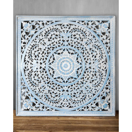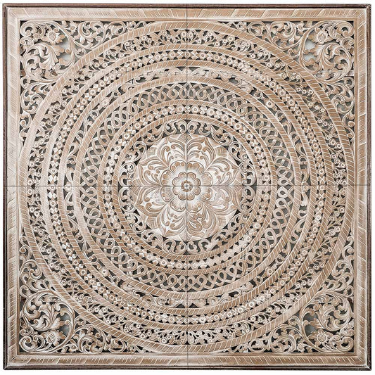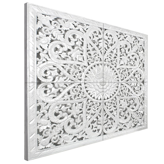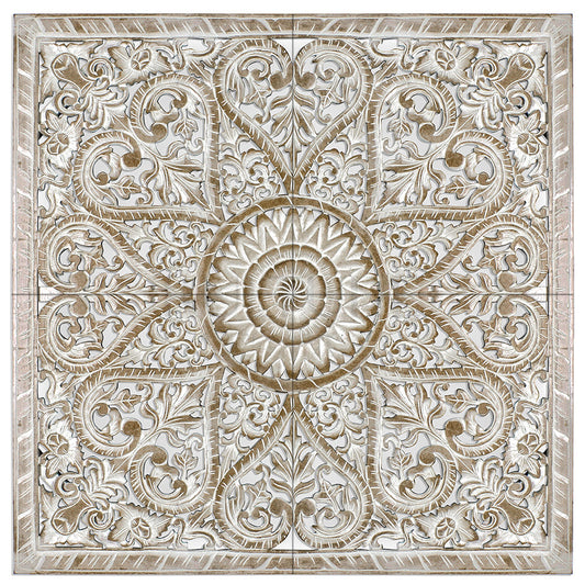 Giant Wood Wall Art / Full Bed Headboard "Manusa" - Antic-wash - [US-stock]