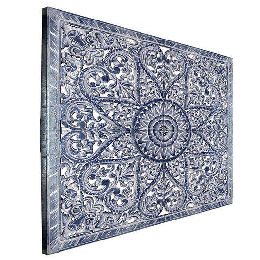 Carved Full Bed Headboard "Peony" - Blue Wash- USA