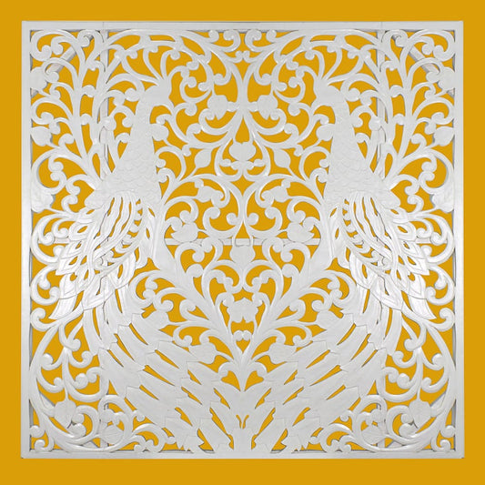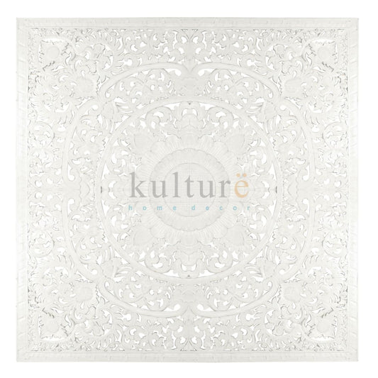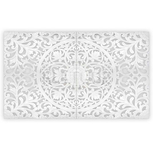Carved Full Bed Headboard "Jantung" - White Wash - USA